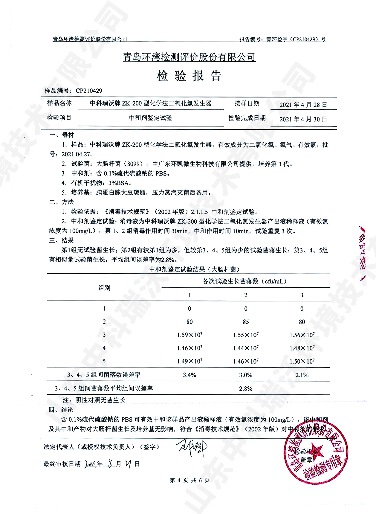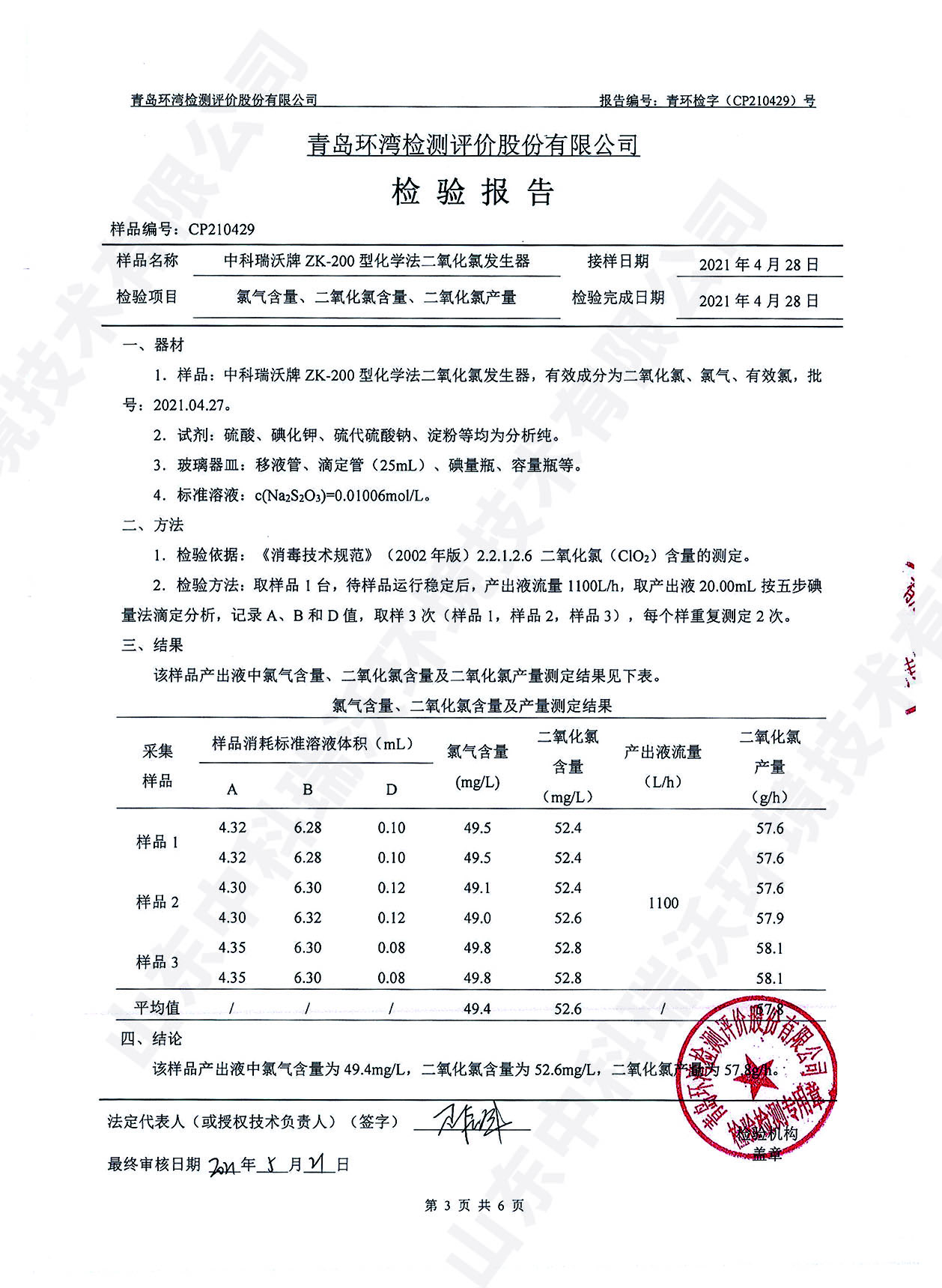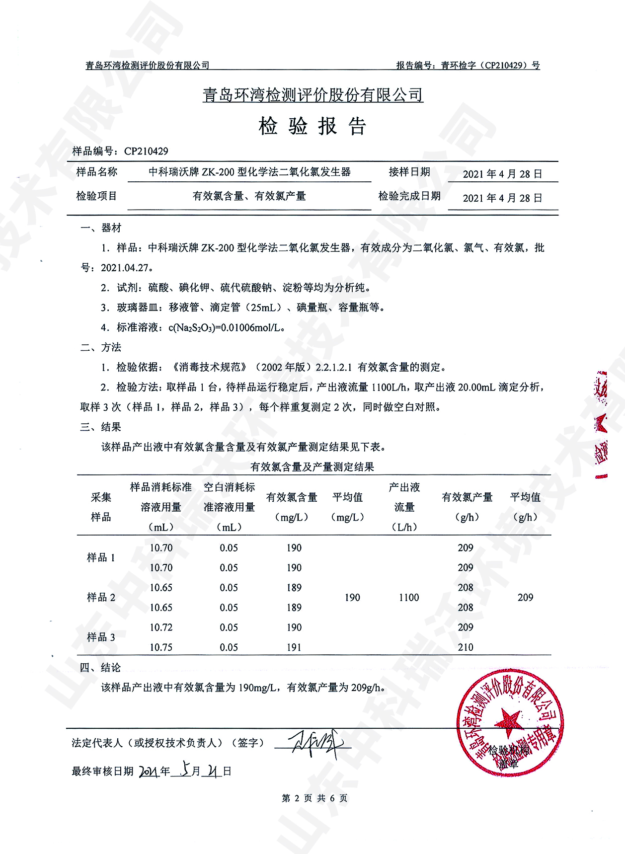 醫(yī)療污水處理設(shè)備檢測報告~二氧化氯消毒