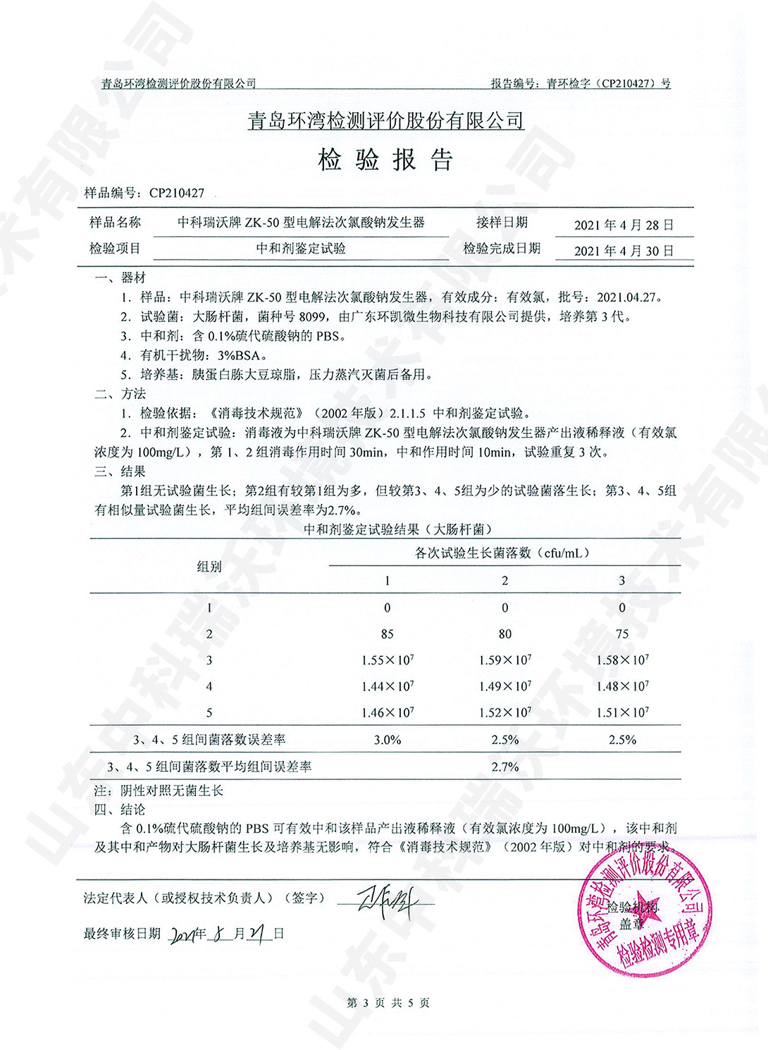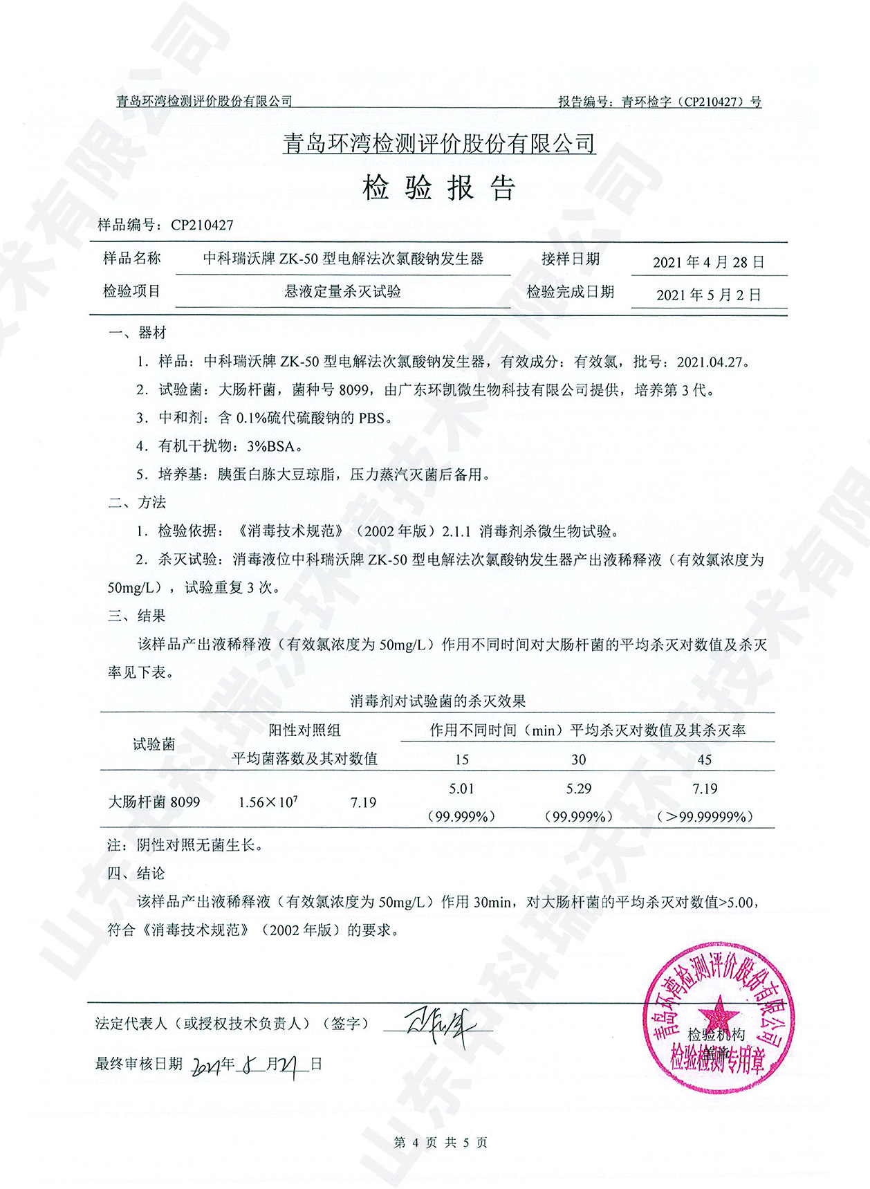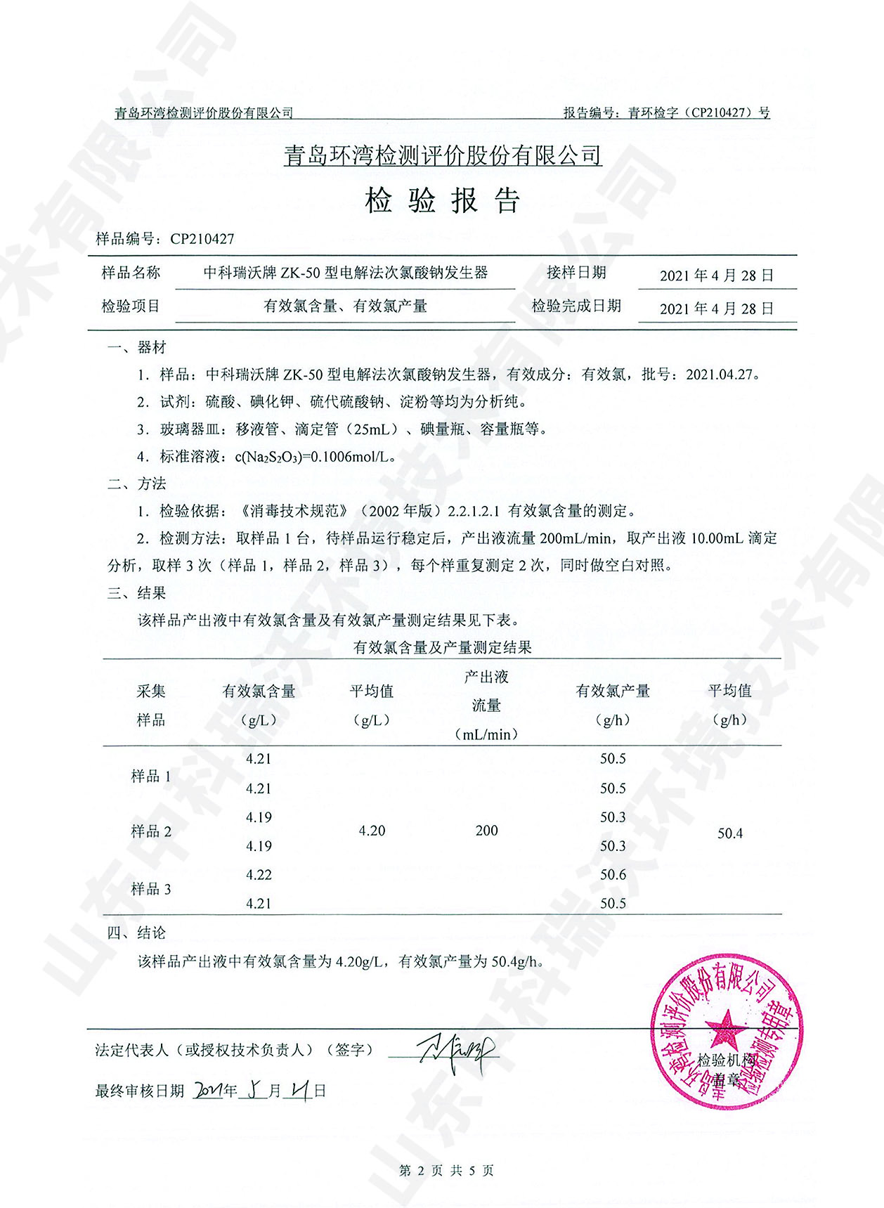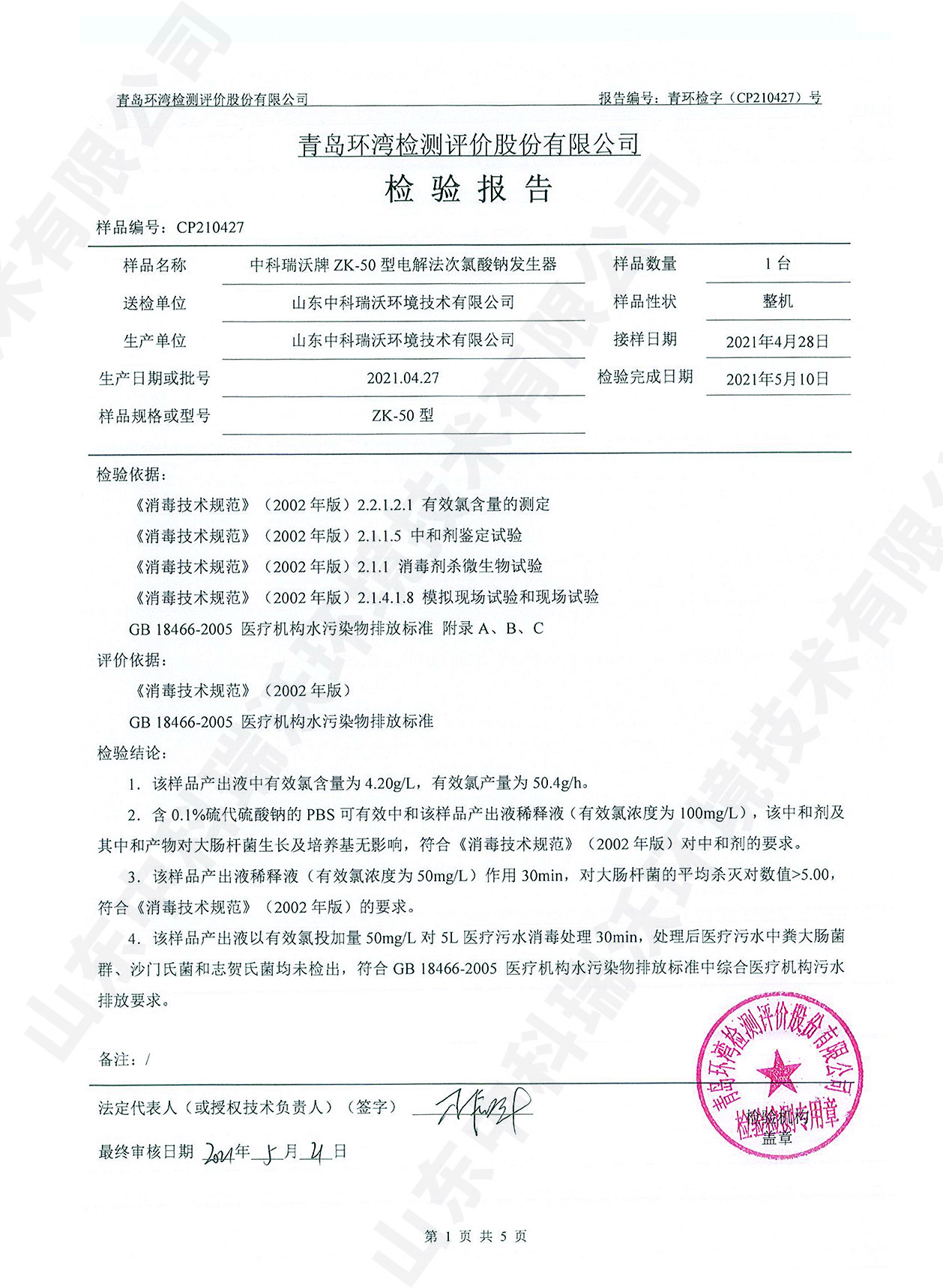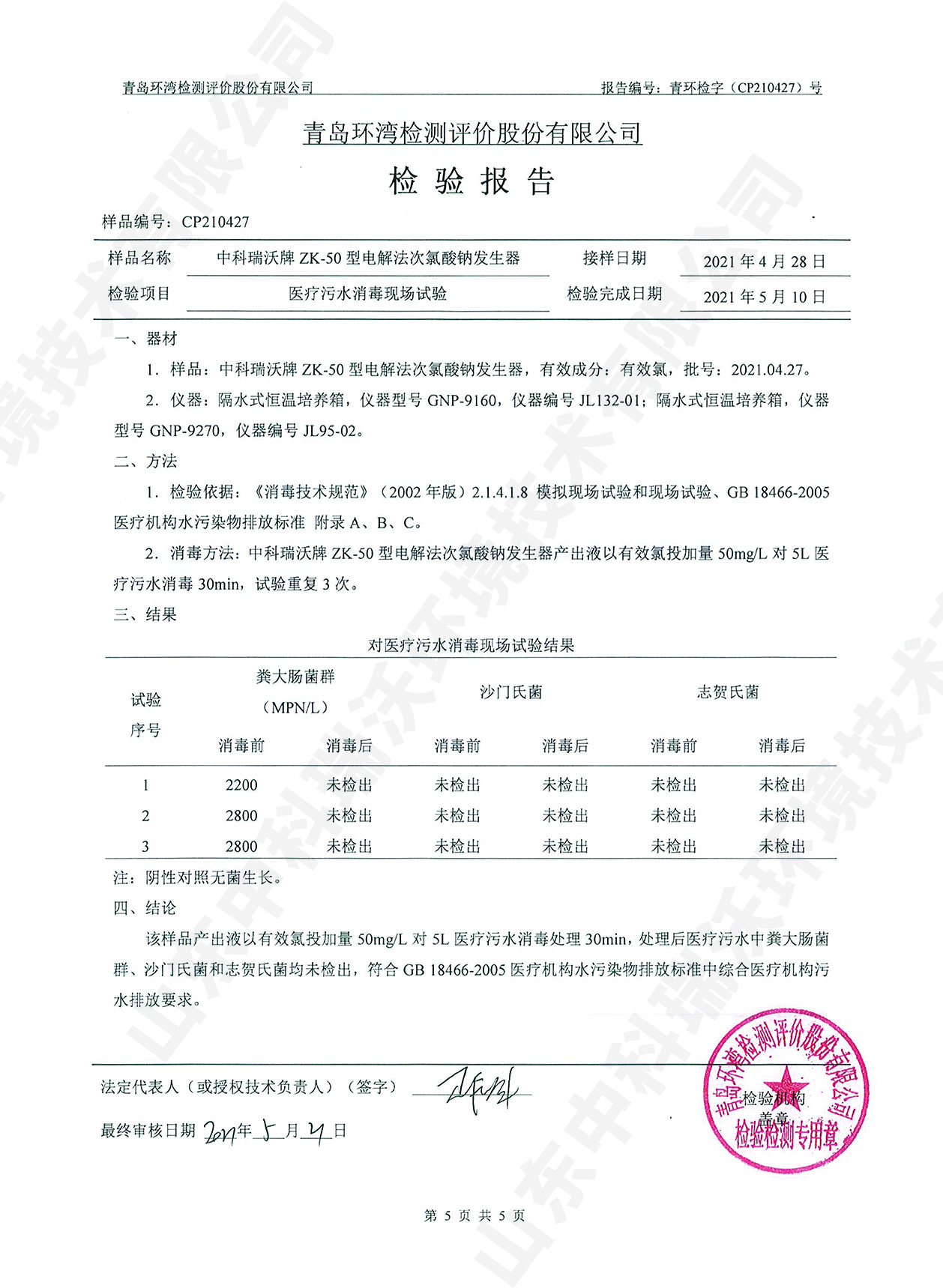 醫(yī)療污水處理設備檢測報告~次氯酸鈉消毒